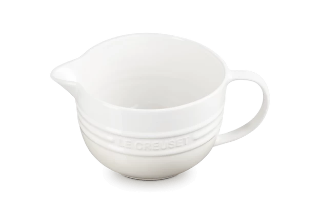 De ronde beslagkom van Le Creuset is gemaakt van crème geglazuurd aardewerk en heeft een diameter van 18,3 cm en een inhoud van 2 liter. De beslagkom heeft inclusief de greep een lengte van 26,1 cm. Gebruik de kom voor het mengen van beslag.