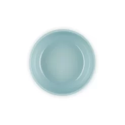 De kom van Le Creuset is gemaakt van geglazuurd aardewerk, uitgevoerd in lichblauw Sea Salt en heeft een glanzende afwerking. De kom heeft een diameter van 16 cm.