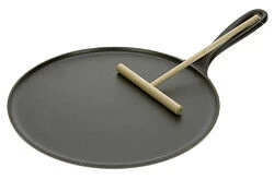 Het geëmailleerde gietijzer zorgt voor een goede en gelijkmatige warmteverdeling door de crêpepan. Hierdoor zullen uw crêpes overal mooi gelijk garen. De lage pannenrand maakt het keren van crêpes of pannenkoeken extra eenvoudig.