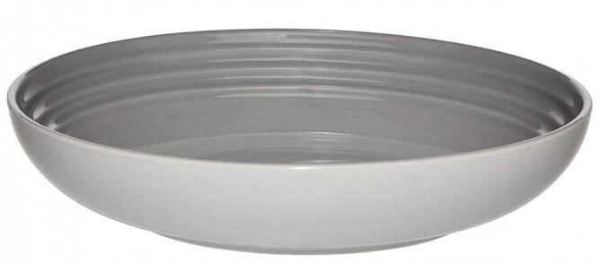 Het diepe bord van Le Creuset is gemaakt van geglazuurd aardewerk, uitgevoerd in mist grey, en heeft een glanzende afwerking. Het bord heeft een diameter van 22 cm.