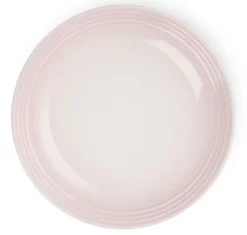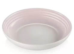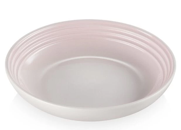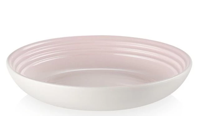 Het diepe bord van Le Creuset is gemaakt van geglazuurd aardewerk, uitgevoerd in roze, en heeft een glanzende afwerking. Het bord heeft een diameter van 22 cm.