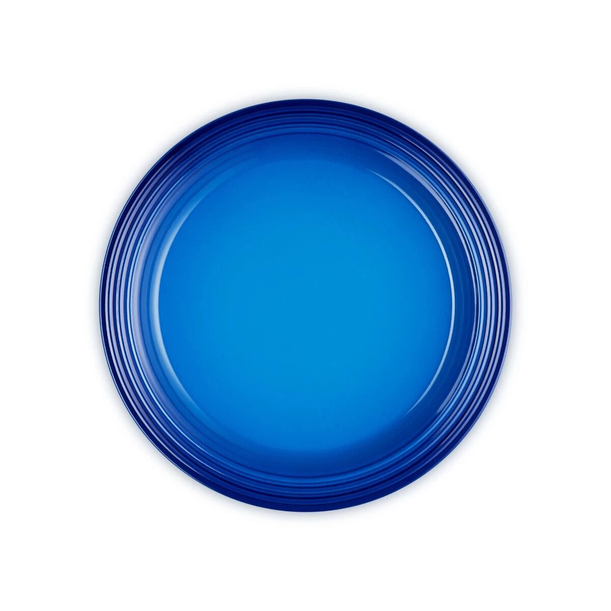 Het dinerbord van Le Creuset is gemaakt van geglazuurd aardewerk, uitgevoerd in Azure blauw, en heeft een glanzende afwerking. Het bord heeft een diameter van 27 cm.