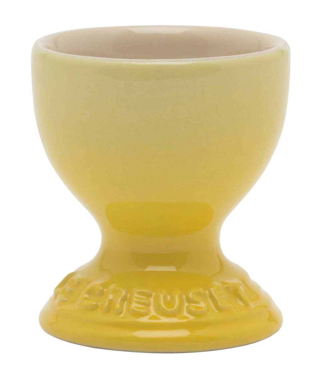 De Le Creuset eierdop is vervaardigd uit soleil – geel – geglazuurd aardewerk, heeft een diameter van 5,2 cm en een hoogte van 5,8 cm. Gebruik de eierdop voor het serveren van een gekookt ei.