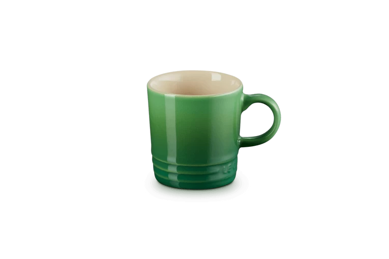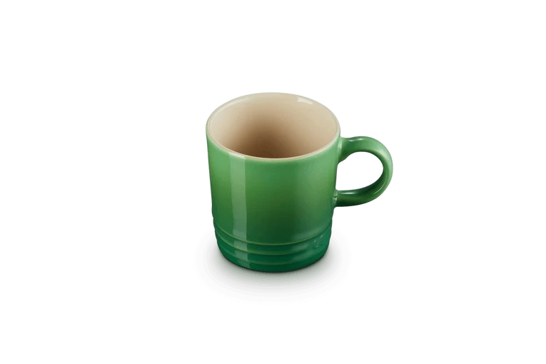 De bamboo Le Creuset espressomok heeft een inhoud van 100 ml. De beker is gemaakt van groen aardewerk en heeft een diameter van 8,75 cm en een hoogte van 6,5 cm. Voor het drinken en serveren van espresso.