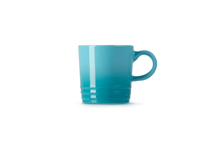 De Le Creuset espressomok heeft een inhoud van 100 ml. De beker is gemaakt van Caribbean Blue aardewerk en heeft een diameter van 8,75 cm en een hoogte van 6,5 cm. Voor het drinken en serveren van espresso.