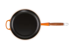 Deze vulcanique, oranje, koekenpan van Le Creuset heeft een diameter van 26 cm en is gemaakt van geëmailleerd gietijzer. In tegenstelling tot de andere koekenpan rond van Le Creuset heeft deze koekenpan een open tegengreep. Gebruik de koekenpan voor het bakken van vlees, omeletten en pannenkoeken.