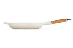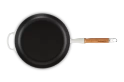 Deze meringue, crèmkleurige, koekenpan van Le Creuset heeft een diameter van 28 cm en is gemaakt van geëmailleerd gietijzer. In tegenstelling tot de andere koekenpan rond van Le Creuset heeft deze koekenpan een open tegengreep. Gebruik de koekenpan voor het bakken van vlees, omeletten en pannenkoeken.
