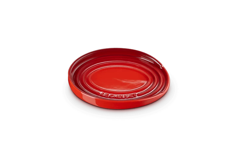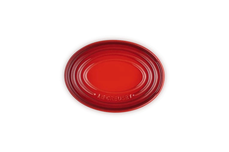 De ovale Le Creuset lepelhouder is gemaakt van rood geglazuurd aardewerk. Het geglazuurde oppervlak is kras- en vlekbestendig en geur- en smaakneutraal. Tijdens het koken kunt u de lepel waarmee u roert op deze lepelhouder leggen.