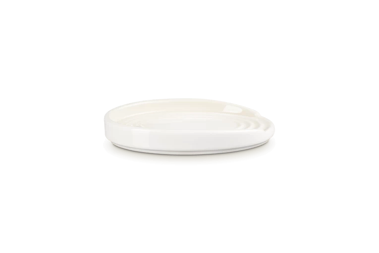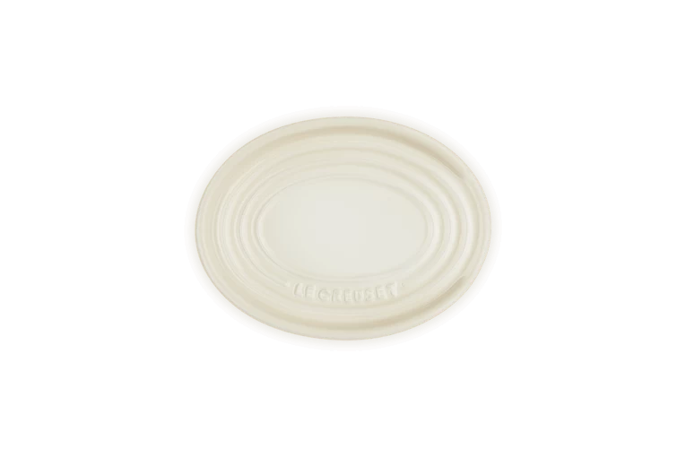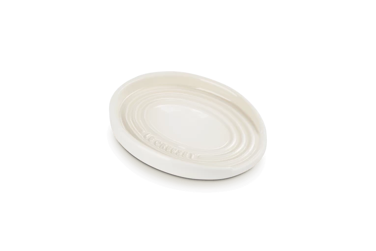 De ovale Le Creuset lepelhouder is gemaakt van crèmekleurig geglazuurd aardewerk. Het geglazuurde oppervlak is kras- en vlekbestendig en geur- en smaakneutraal. Tijdens het koken kunt u de lepel waarmee u roert op deze lepelhouder leggen.