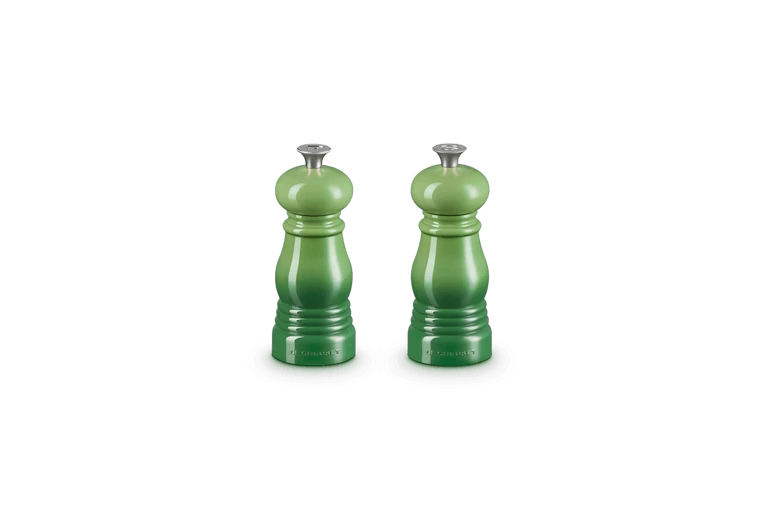 De peper- en zoutmolenset bamboo van Le Creuset is gemaakt van groen kunststof en heeft een lengte van 11 cm. De molen heeft een klassiek ontwerp en is eenvoudig te vullen. Met het keramische maalmechanisme maalt u zowel grof en fijn. Het maalsysteem is eenvoudig aan te passen naar uw wens, zodat u uw gerechten altijd op de juiste smaak brengt. De sluitdoppen zijn voorzien van een duidelijke markering, waardoor de molens gemakkelijk te onderscheiden zijn.