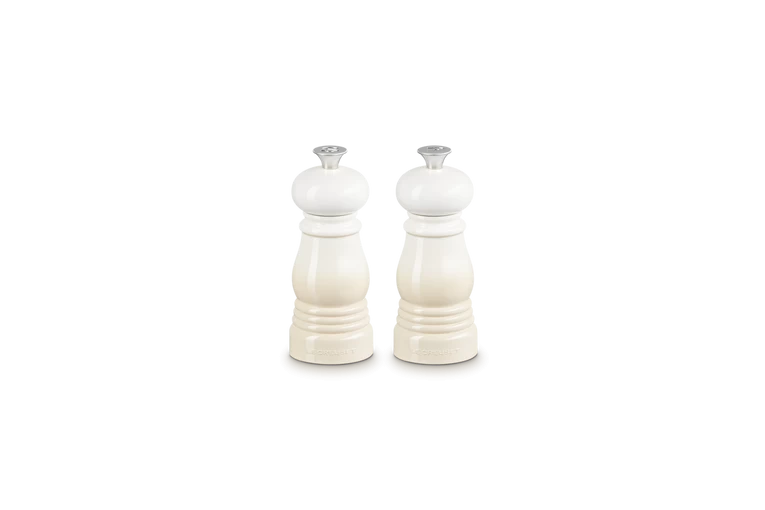 De peper- en zoutmolenset cream van Le Creuset is gemaakt van meringue kunststof en heeft een lengte van 11 cm. De molen heeft een klassiek ontwerp en is eenvoudig te vullen. Met het keramische maalmechanisme maalt u zowel grof en fijn. Het maalsysteem is eenvoudig aan te passen naar uw wens, zodat u uw gerechten altijd op de juiste smaak brengt. De sluitdoppen zijn voorzien van een duidelijke markering, waardoor de molens gemakkelijk te onderscheiden zijn.