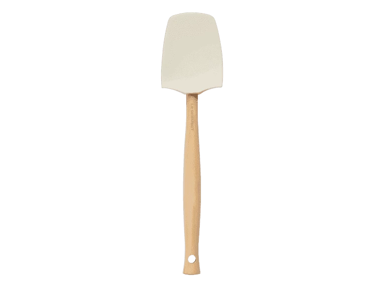 De meringue Le Creuset grote spatel is gemaakt van hout en heeft een siliconen blad, waardoor de spatel niet krast. De spatel heeft een platte en bolle zijde en heeft een lengte van 28 cm. De breedte van het blad is 7 cm.