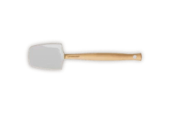 De grijze Le Creuset grote spatel is gemaakt van hout en heeft een siliconen blad, waardoor de spatel niet krast. De spatel heeft een platte en bolle zijde en heeft een lengte van 28 cm. De breedte van het blad is 7 cm.