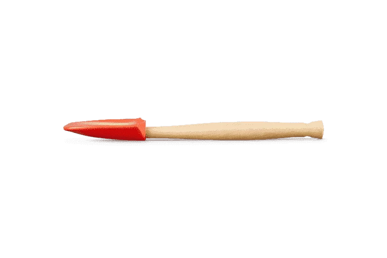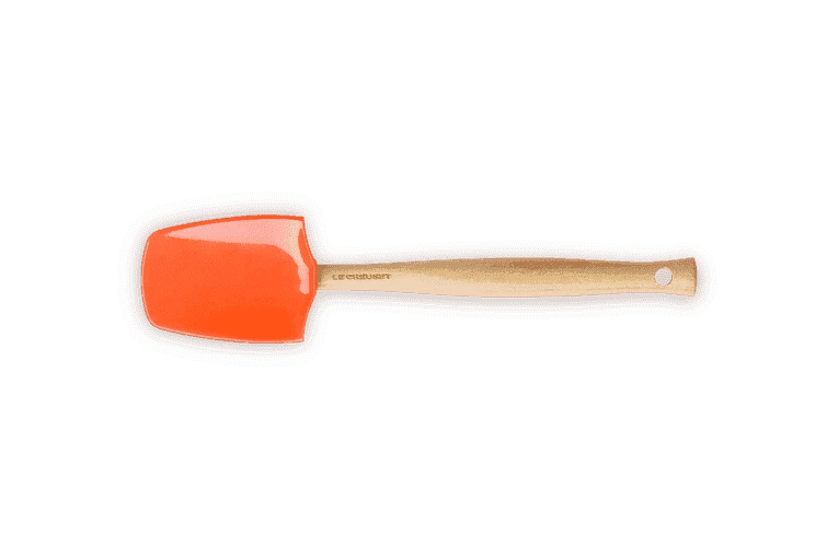 De oranje Le Creuset grote spatel is gemaakt van hout en heeft een siliconen blad, waardoor de spatel niet krast. De spatel heeft een platte en bolle zijde en heeft een lengte van 28 cm. De breedte van het blad is 7 cm.