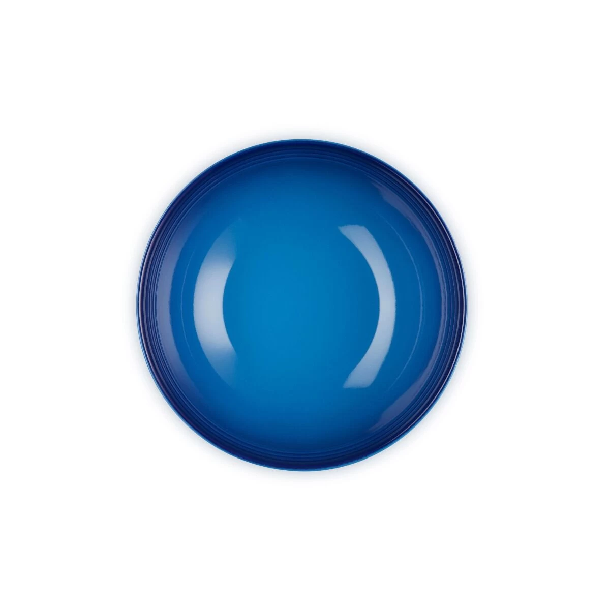 De ronde schaal van Le Creuset is gemaakt van Azure, donker blauw, geglazuurd aardewerk. De diameter van de schaal is 24 cm en heeft een inhoud van 2,2 liter. Gebruik de schaal om bijvoorbeeld een salade in te serveren.
