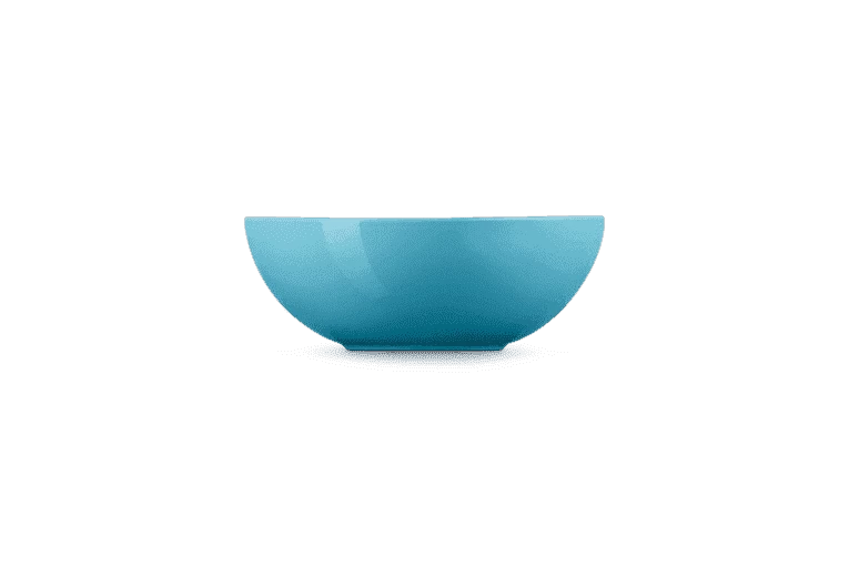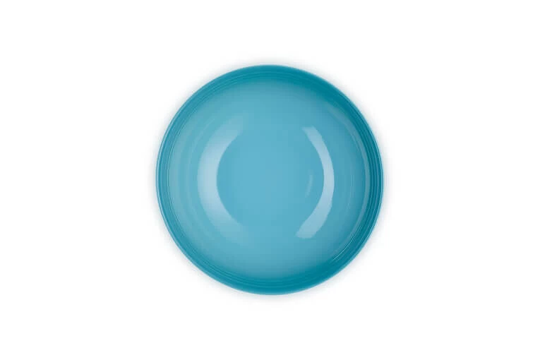 De ronde schaal van Le Creuset is gemaakt van caribbean blue, blauw, geglazuurd aardewerk. De diameter van de schaal is 24 cm en heeft een inhoud van 2,2 liter. Gebruik de schaal om bijvoorbeeld een salade in te serveren.