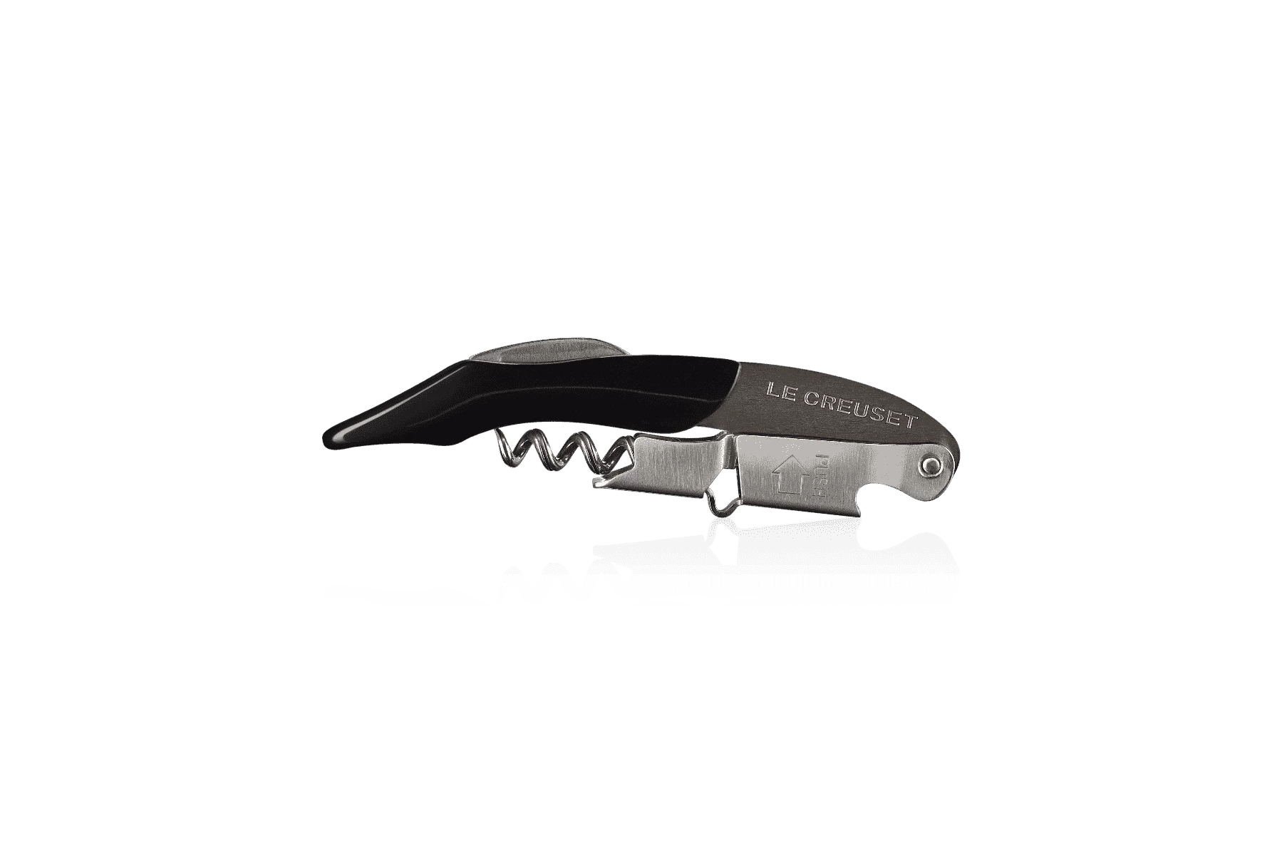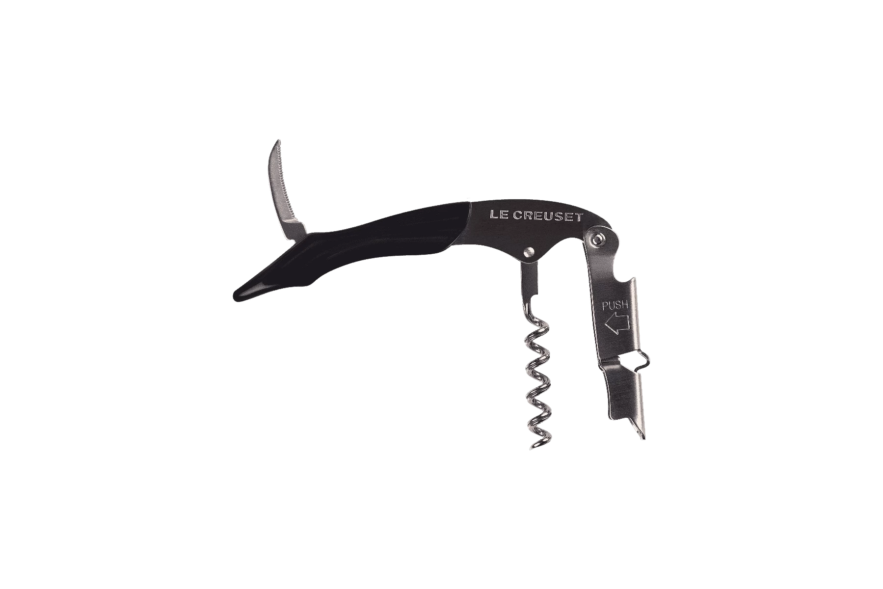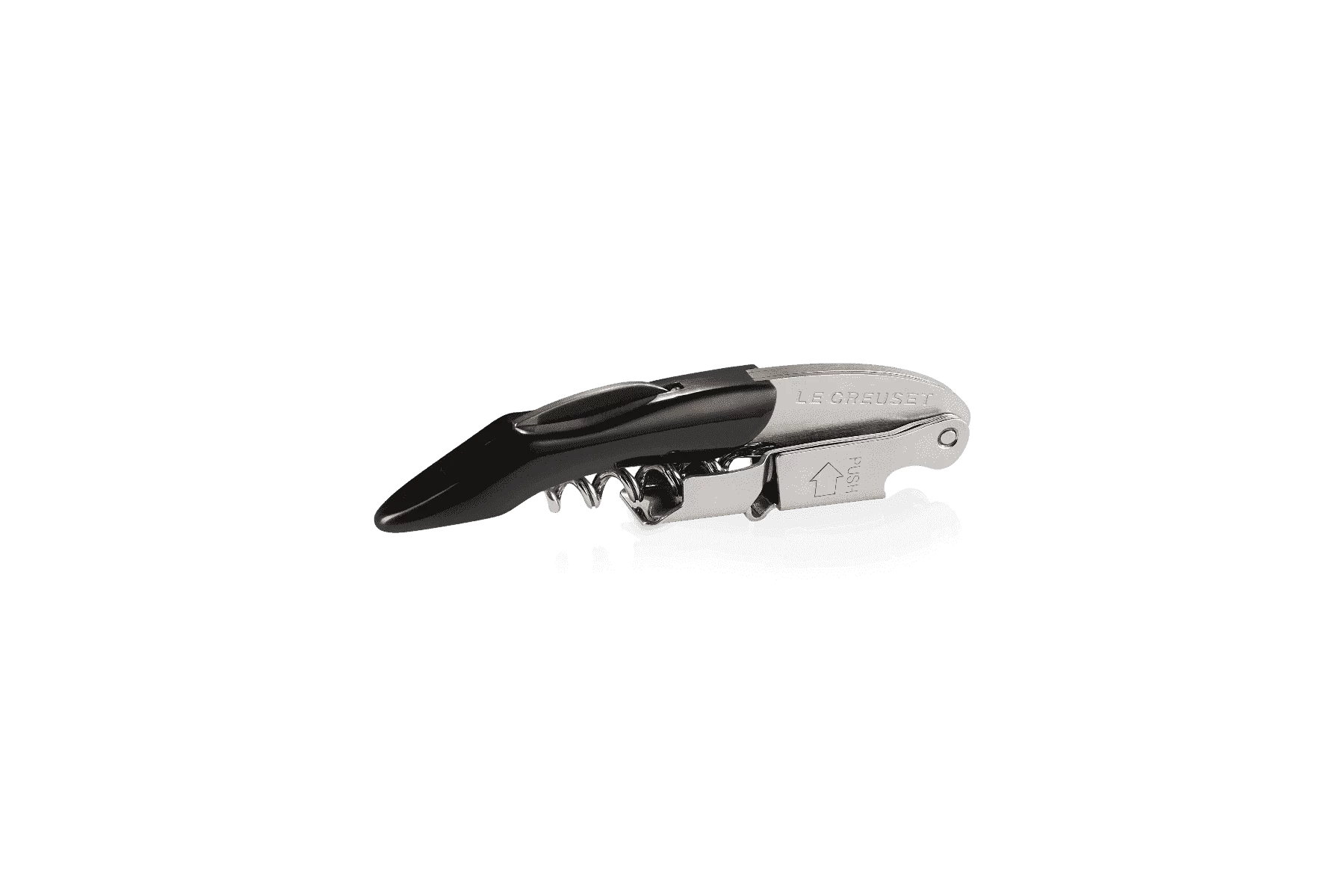 Het roestvrijstalen kelnersmes van Le Creuset Screwpull heeft 3 functies: kurkentrekker, flessenopener en foliesnijder. U opent eenvoudig alle flessen door eerst het folie rond de hals van bijvoorbeeld de wijnfles door te snijden en vervolgens de kurk met de kurkentrekker te verwijderen.
