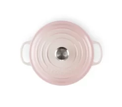 De roze Signature braadpan van Le Creuset heeft een diameter van 20 cm. De ronde pan van geëmailleerd gietijzer heeft een inhoud van 2,4 liter, bedoeld voor 2 tot 4 personen. De braad-/ stoofpan heeft extra grote grepen. De ronde vorm maakt de Signature braadpan geschikt voor soep en stoofgerechten als boeuf bourguignon.