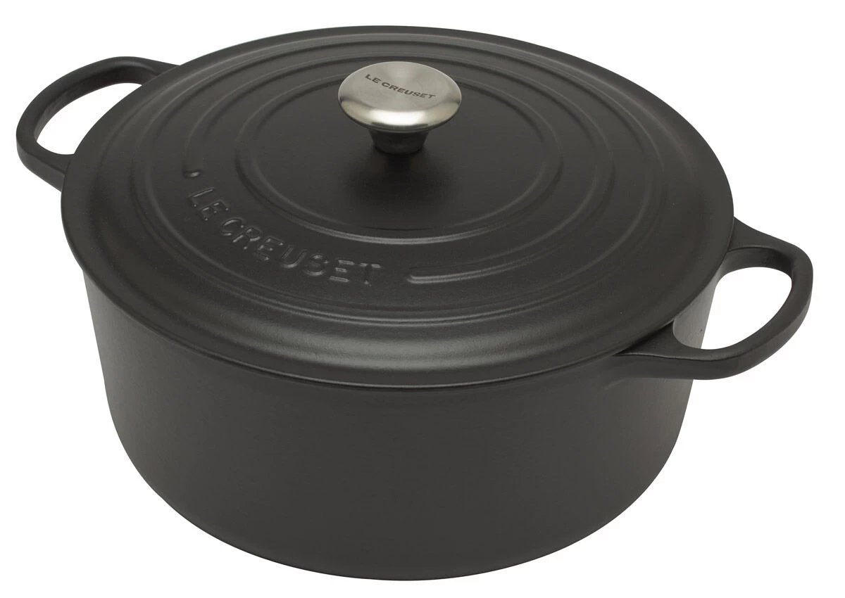 De matzwarte Signature braadpan van Le Creuset heeft een diameter van 30 cm. De ronde pan van geëmailleerd gietijzer heeft een inhoud van 8,1 liter, bedoeld voor 8 tot 10 personen. De braad-/ stoofpan heeft extra grote grepen. De ronde vorm maakt de Signature braadpan geschikt voor soep en stoofgerechten als boeuf bourguignon.