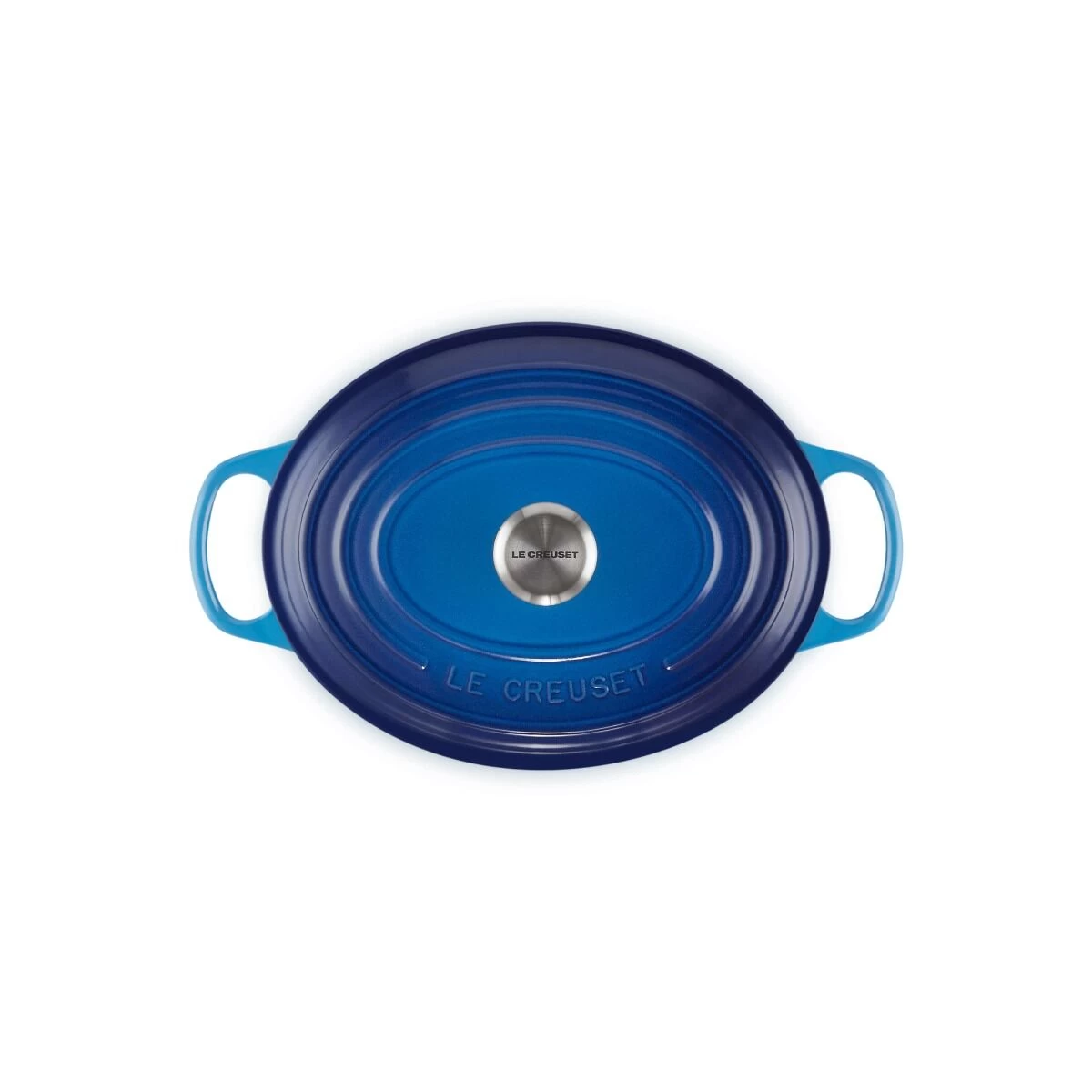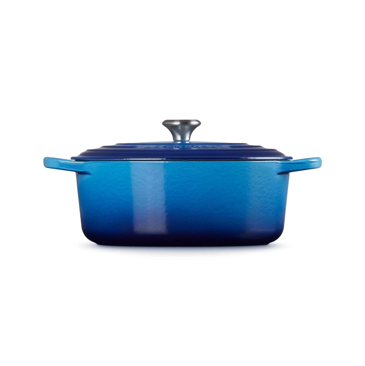 De Signature ovale braadpan van Le Creuset in de kleur Azure heeft een lengte van 27 cm. De ronde pan van geëmailleerd gietijzer heeft een inhoud van 1,8 liter. De braad-/ stoofpan heeft extra grote grepen. De ronde vorm maakt de Signature braadpan geschikt voor soep en stoofgerechten als boeuf bourguignon.