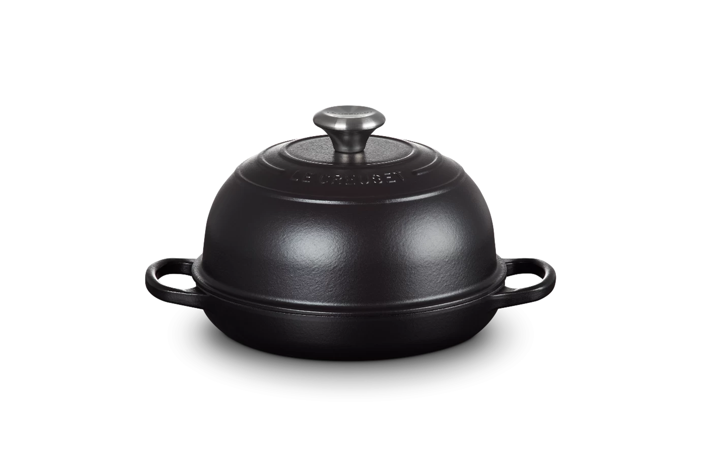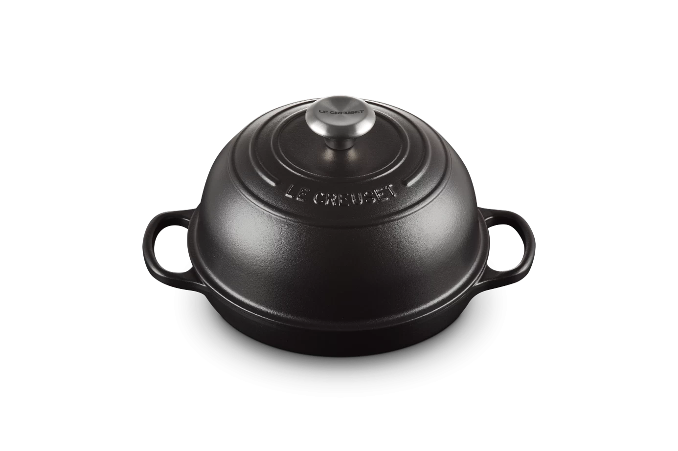 De matzwarte Signature broodpan van Le Creuset heeft een diameter van 24 cm. De ronde broodbakpan is gemaakt van geëmailleerd gietijzer, heeft een inhoud van 1,6 liter en is voorzien van ergonomische grepen. Gebruik de Le Creuset broodpan voor het bakken van diverse soorten brood.