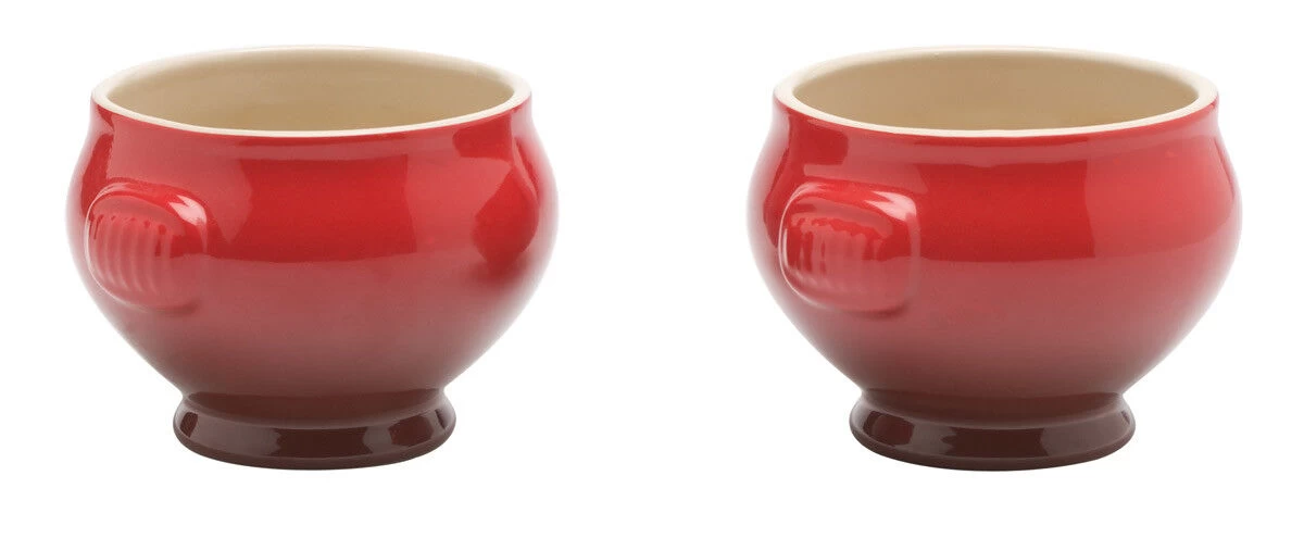De set bestaat uit 2 kersrode soepkommen van Le Creuset met een doorsnede van 11 cm en een inhoud van 600 ml. De soepkom is geschikt voor gebruik in de oven, magnetron en diepvries. De kom is geschikt voor het serveren van soep.