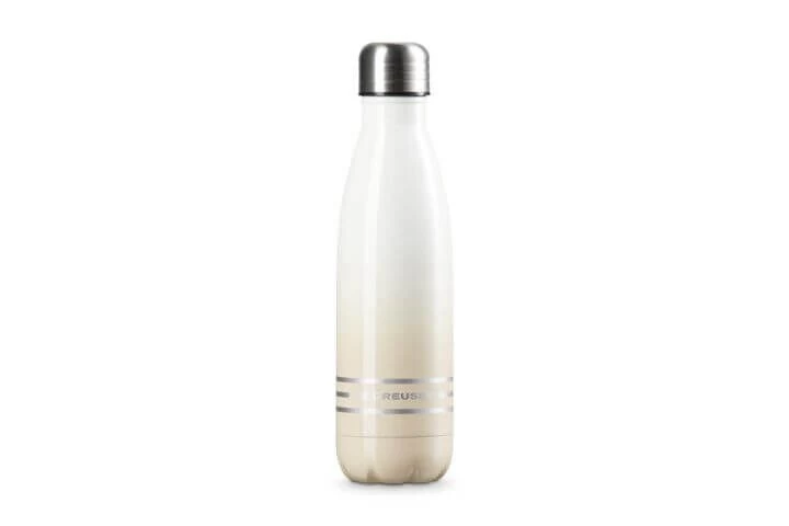 De Le Creuset waterfles is gemaakt van Meringue, crèmekleurig, roestvrij staal en heeft een inhoud van 500 ml. De fles heeft een diameter van 7,1 cm en is 26 cm hoog. Gebruik de fles voor het meenemen van zowel warme als koude dranken.